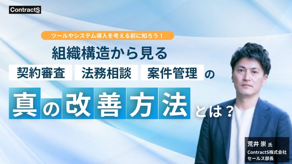 【ご好評につきアーカイブ配信】組織構造から見る契約審査・法務相談・案件管理の真の改善方法とは?