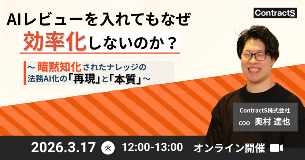 【3/17(火)開催】AIレビューを入れてもなぜ効率化しないのか?〜暗黙知化されたナレッジの法務AI化の再現と本質〜